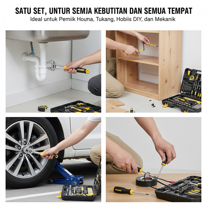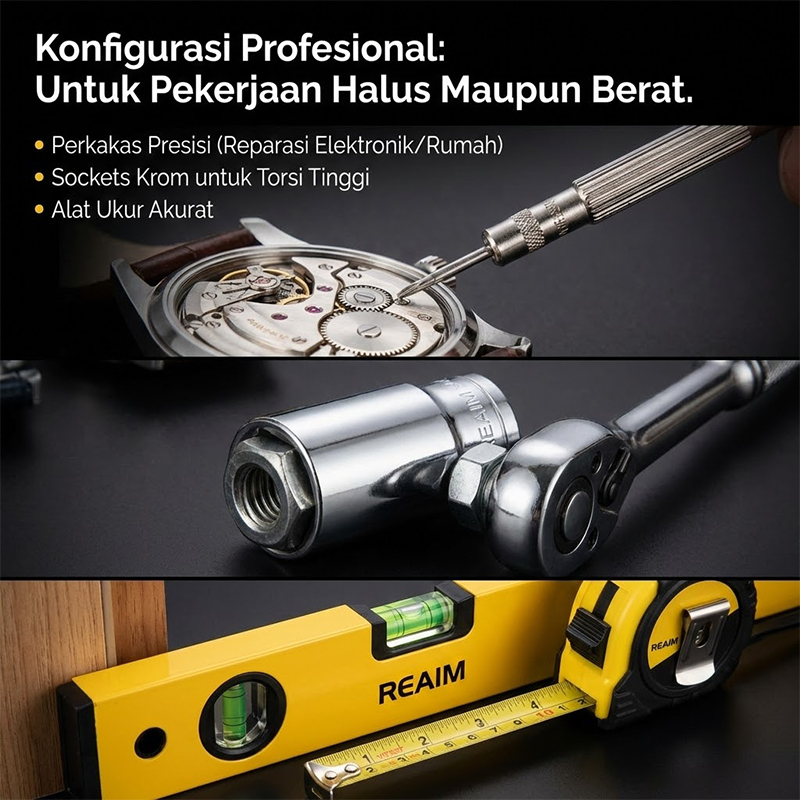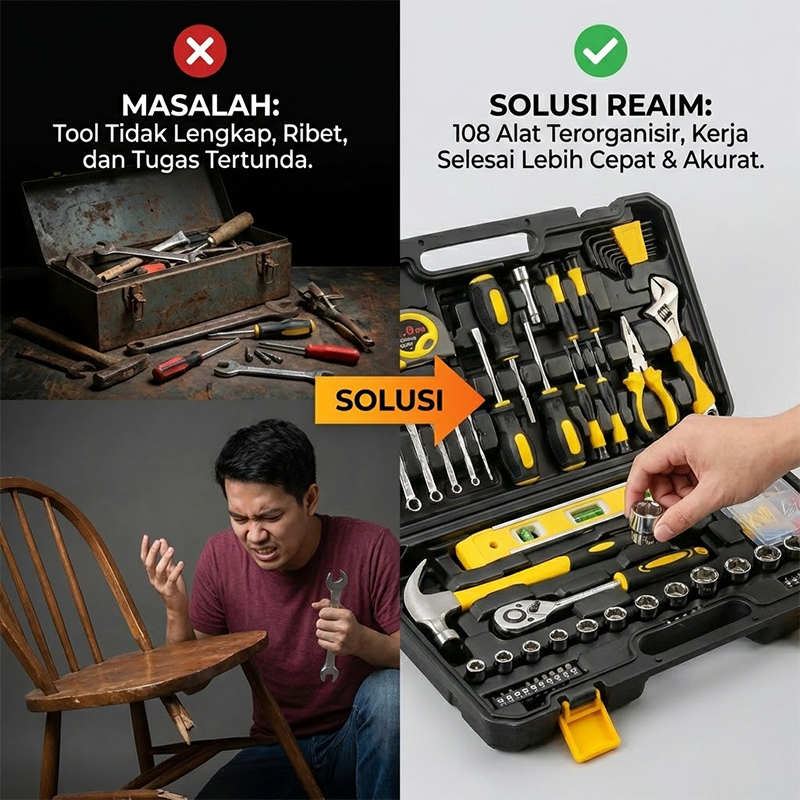 Reaim 108 PCS Set Kunci Lengkap Sok Kunci Shock Toolbox Set Home Tool Mobil Motor Lengkap Socket