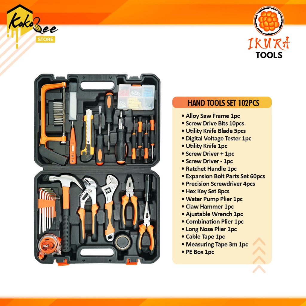 Hand tool kit set 102 pcs tool kit - Alat pertukangan hand tools set total 102pcs - Alat pertukangan set tang obeng baut palu gergaji cutter meteran - Tool box kit dengan isi untuk rumahan bengkel serbaguna multifungsi