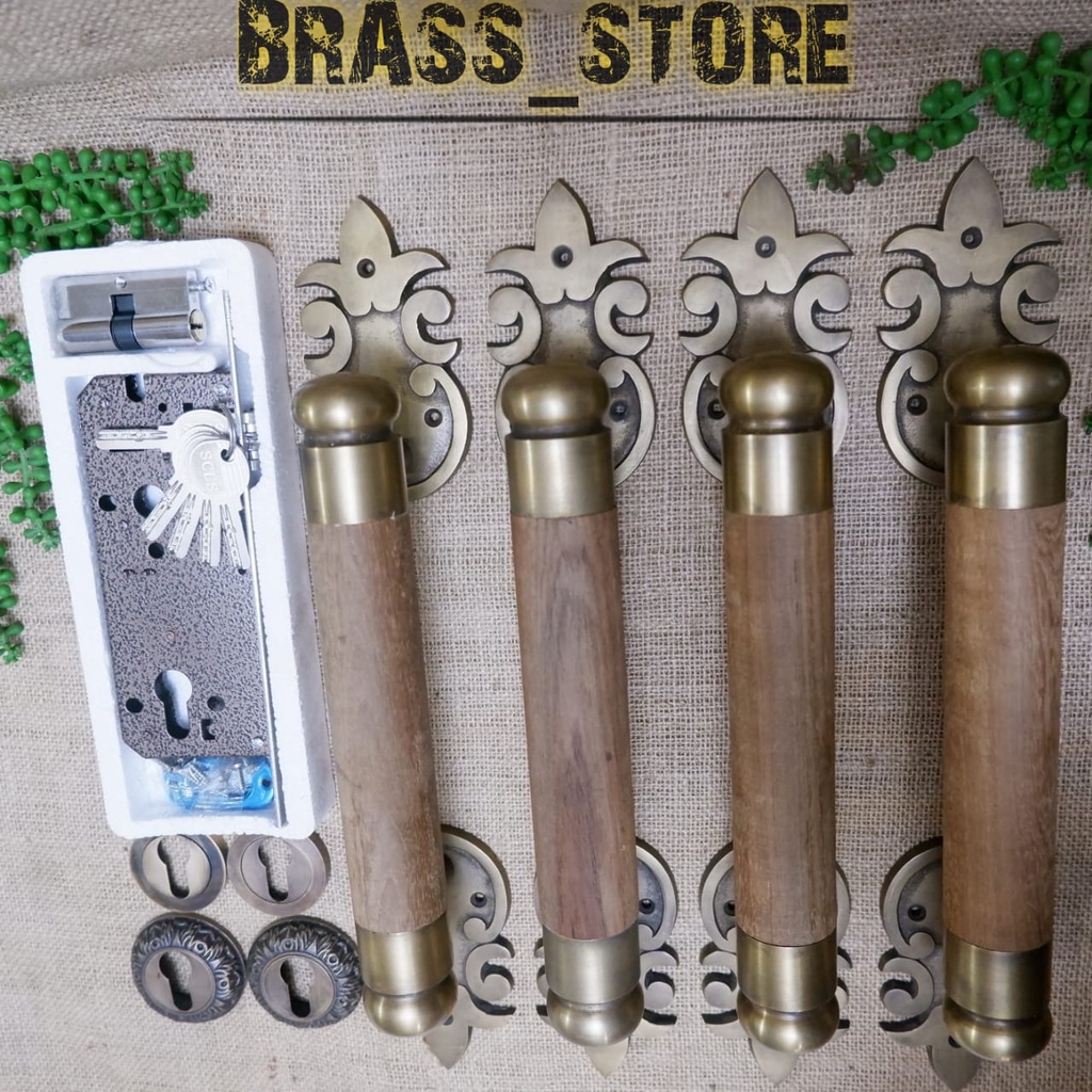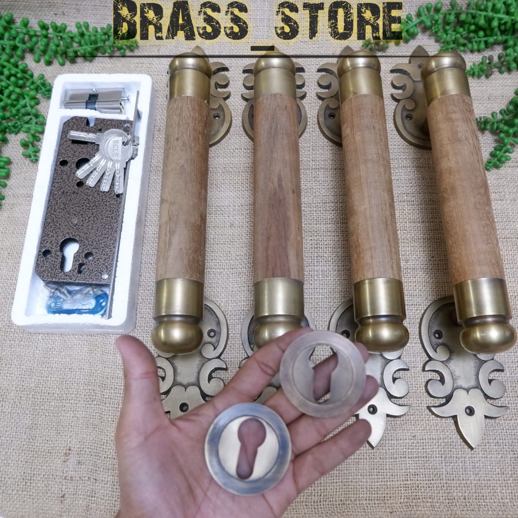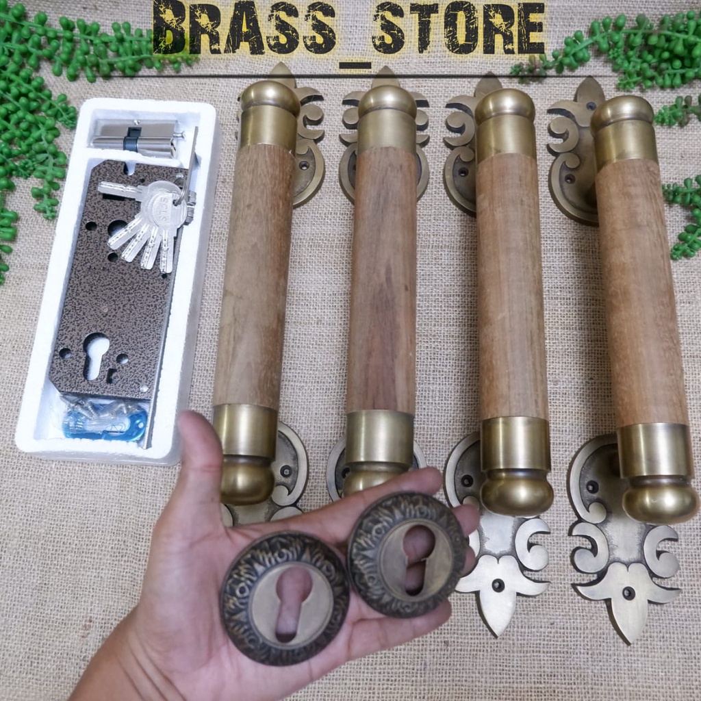 Handle Pintu Rumah Gagang Pintu Rumah Handle Kayu Kombinasi Kuningan