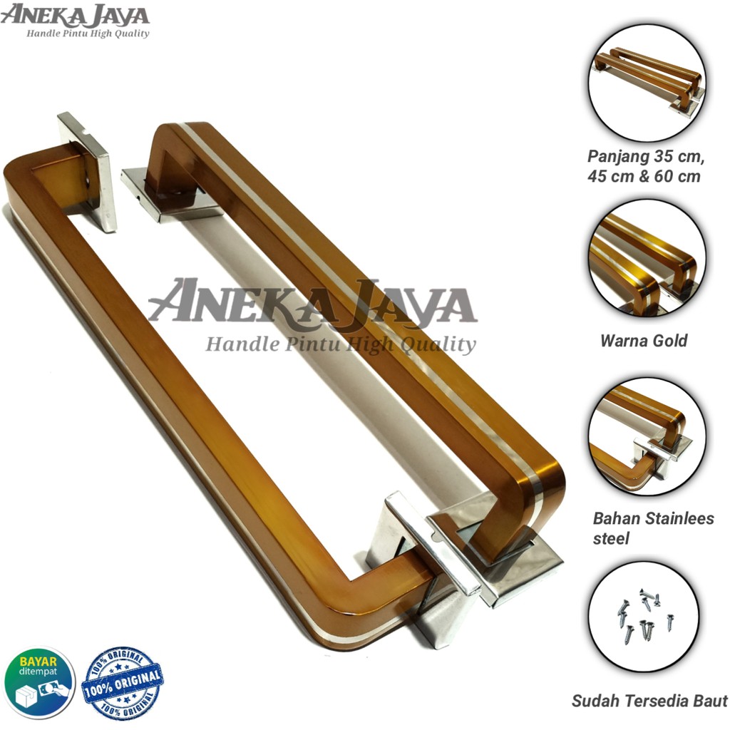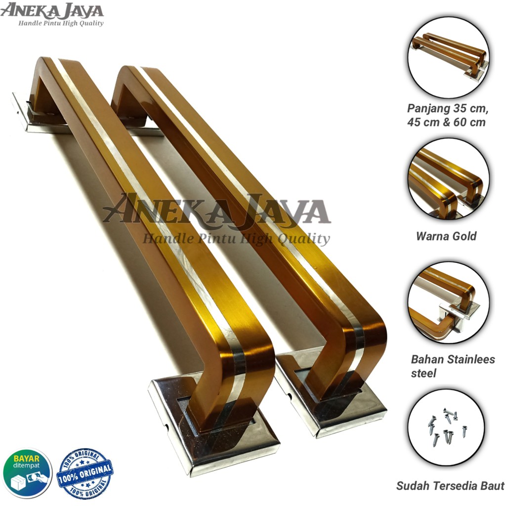 Handle Pintu Rumah Panjang 35 cm 45 cm 60 cm warna Gold kuning emas / Gagang Pintu Rumah Stainless