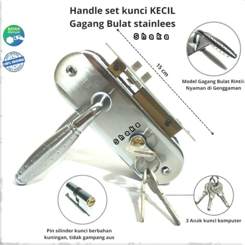 Handle set kunci pintu rumah stainless kecil 15cm gagang pintu rumah tarikan pintu rumah stainless