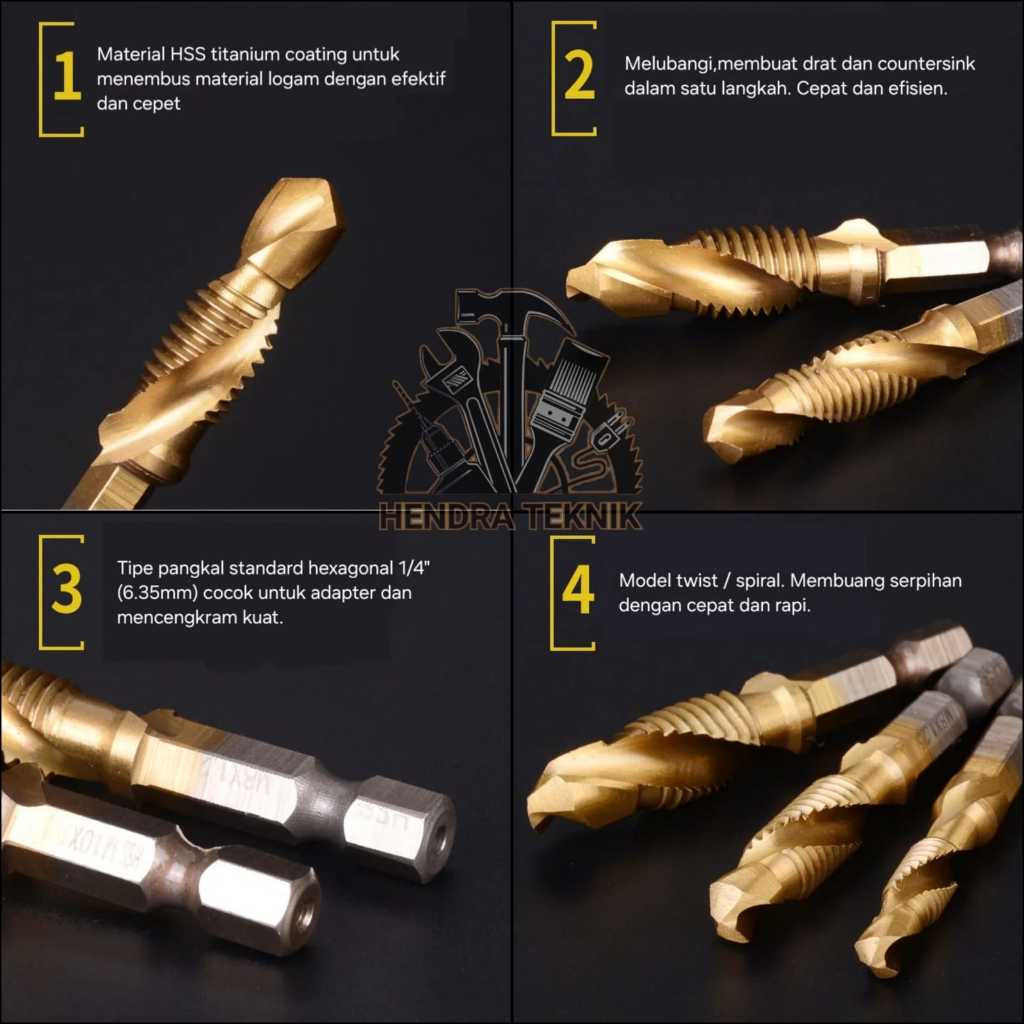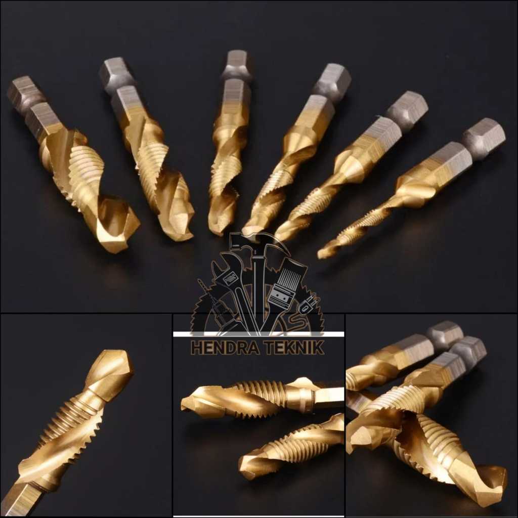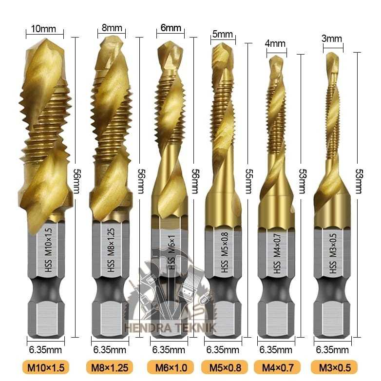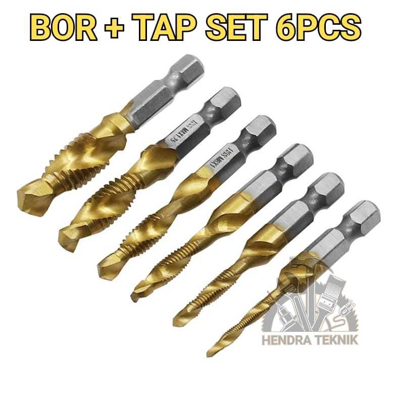 Handtap set 6 pcs hand tap mesin drill & tap bor set 6pcs alat drat mata bor drat mesin set