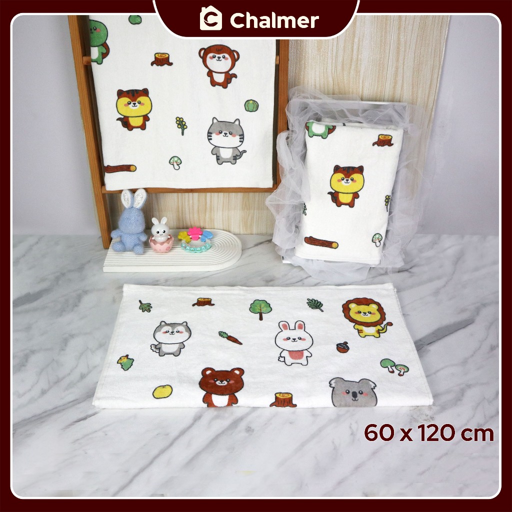 Handuk Bayi Chalmer Ukuran 60 x 120 cm Handuk Bayi Lembut Print Anak Karakter