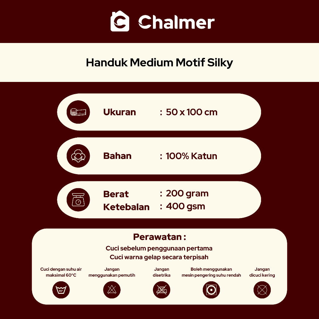 Handuk Mandi Chalmer 50 x 100 cm Motif Silky Handuk Medium Travel Anak Kepala Rambut
