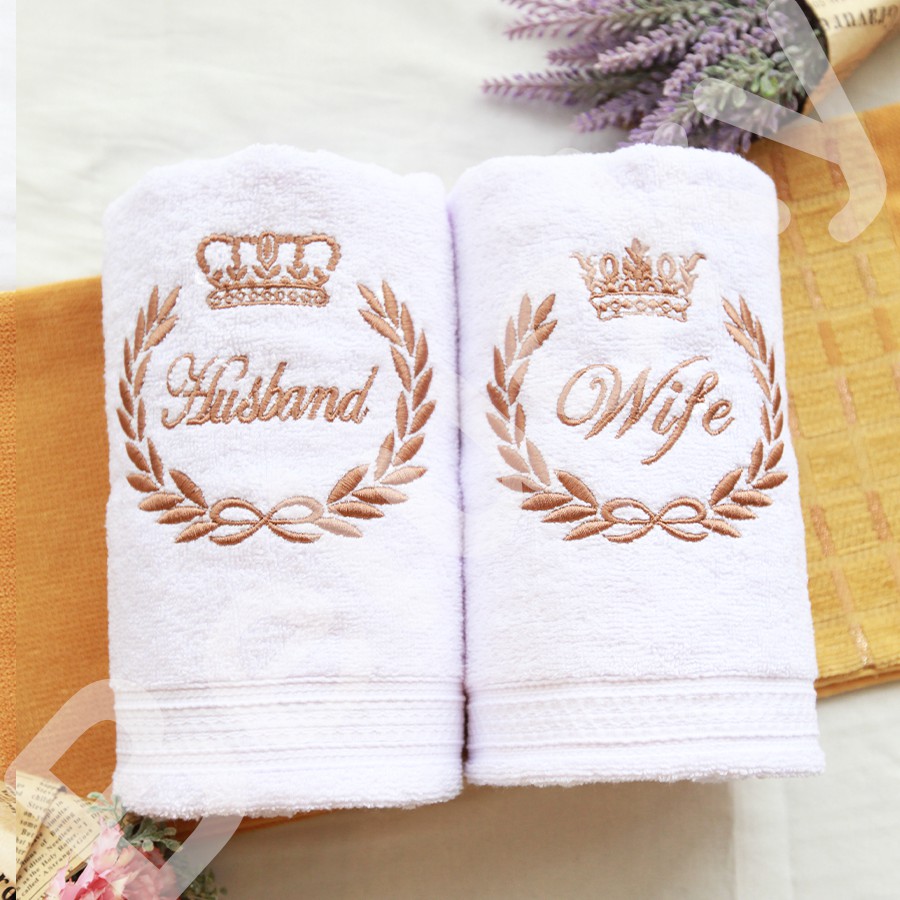Handuk Couple Seserahan Hampers Ready Bordir Pasangan Gift Set Box Kado Pernikahan Wedding Gift + Box + Kartu ucapan Buket Bouquet Bunga-MAHKOTA
