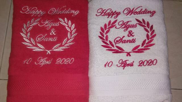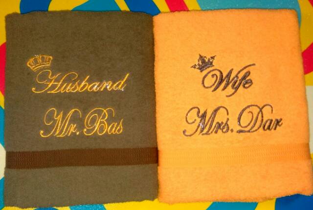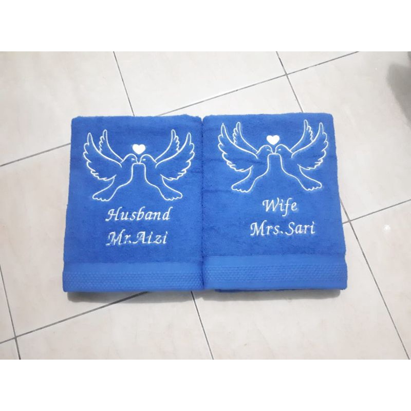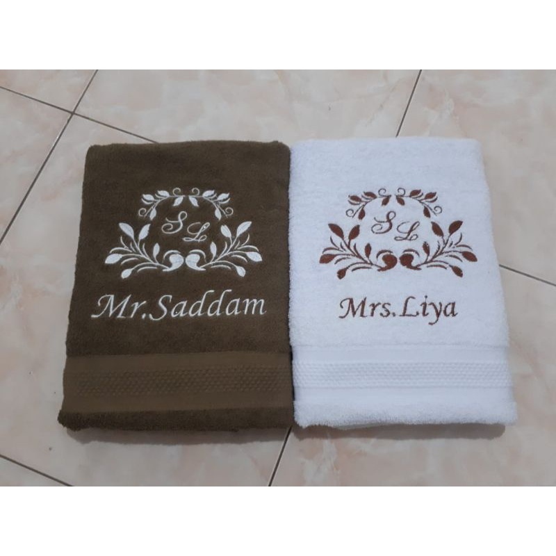 Handuk couple / bordir custom / handuk kado / handuk wedding