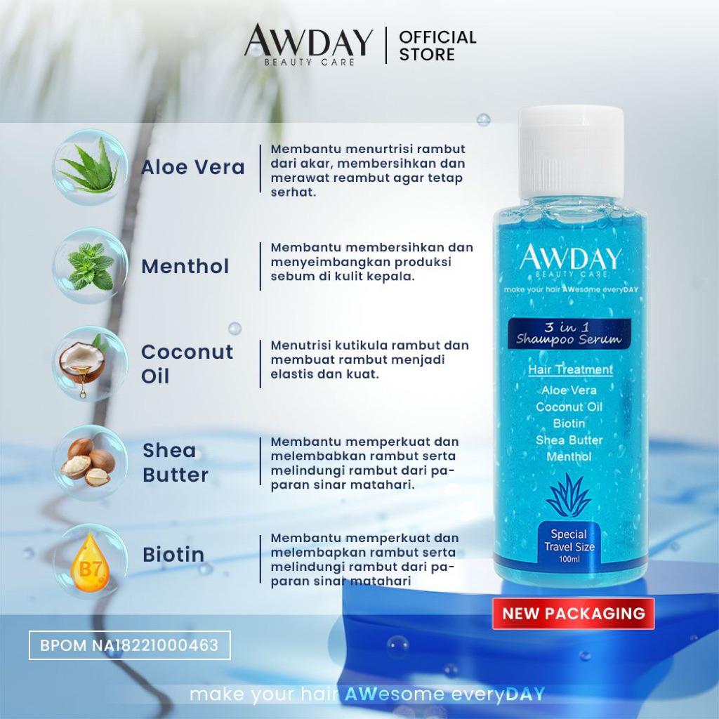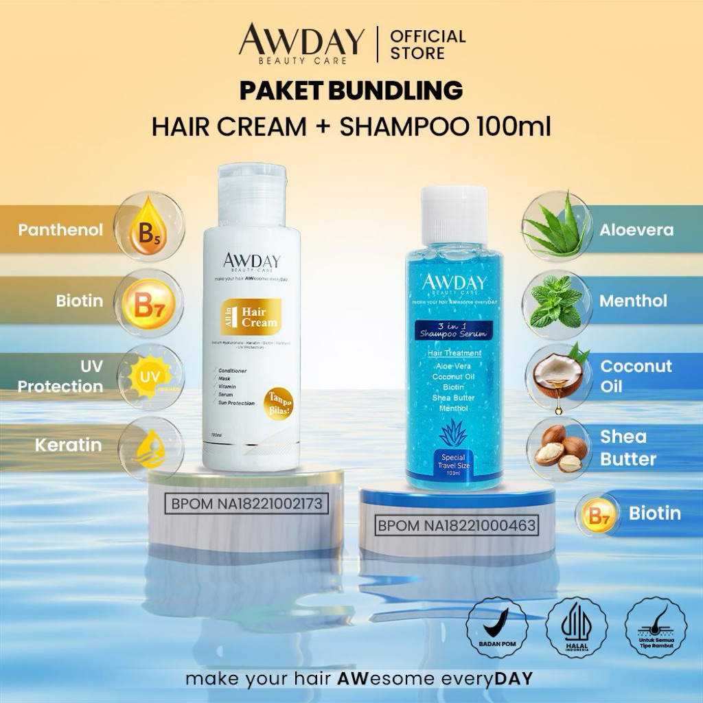 AWDAY PAKET MURAH TRAVEL SIZE 100ML SHAMPOO & HAIRCREAM TANPA BILAS 100ML