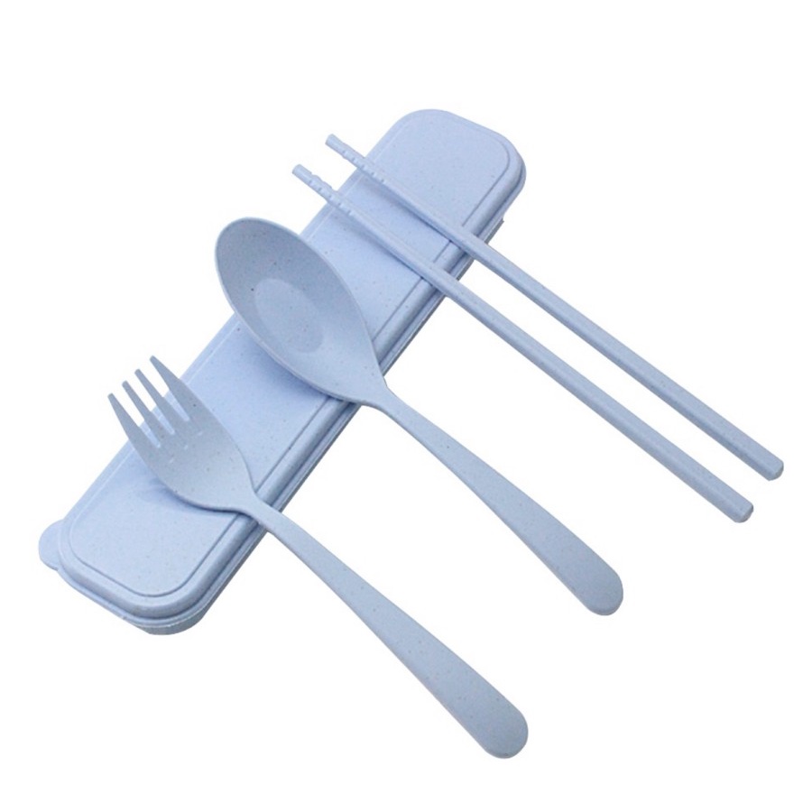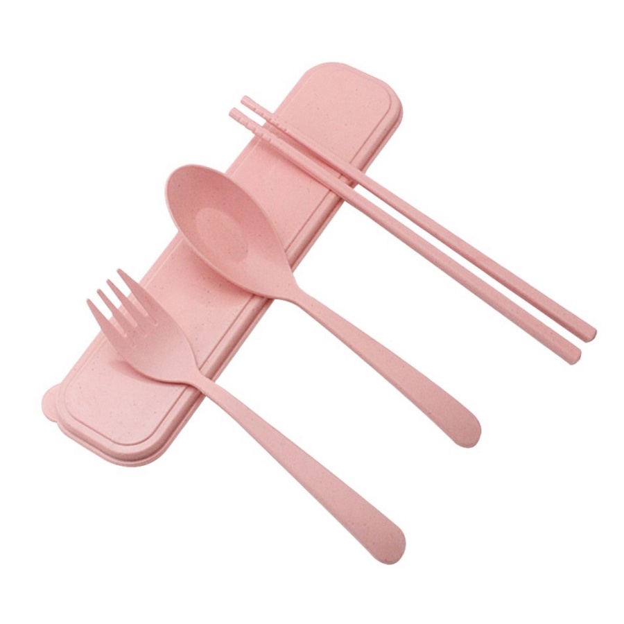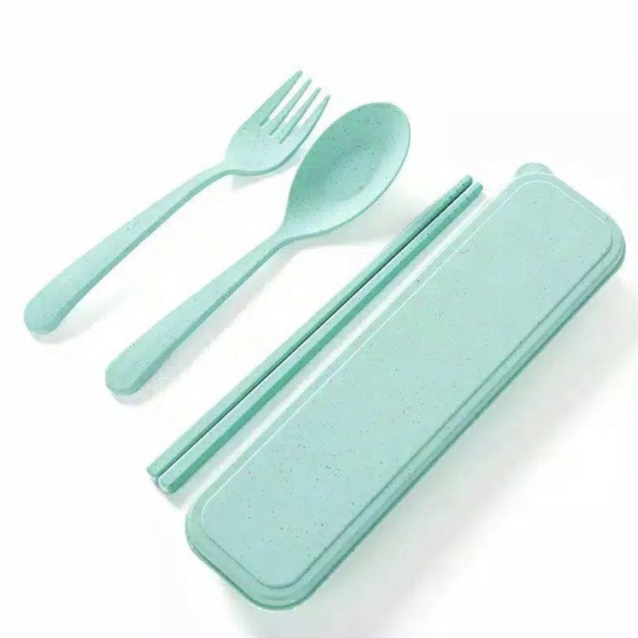 WARNA RANDOM JERAMI GANDUM SENDOK GARPU SUMPIT PORTABLE SET / ALAT MAKAN BAHAN ALAMI JERAMI GANDUM