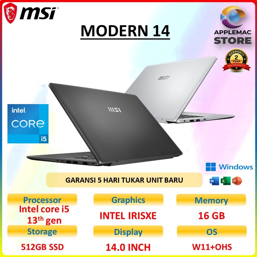LAPTOP GEN 13 MSI MODERN 14 I5 1355 8GB 512GB W11+OHS 14.0FHD IPS BLIT 2Y