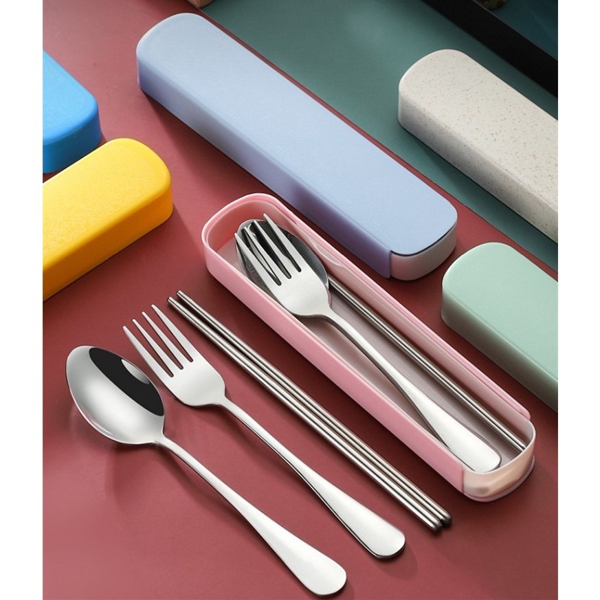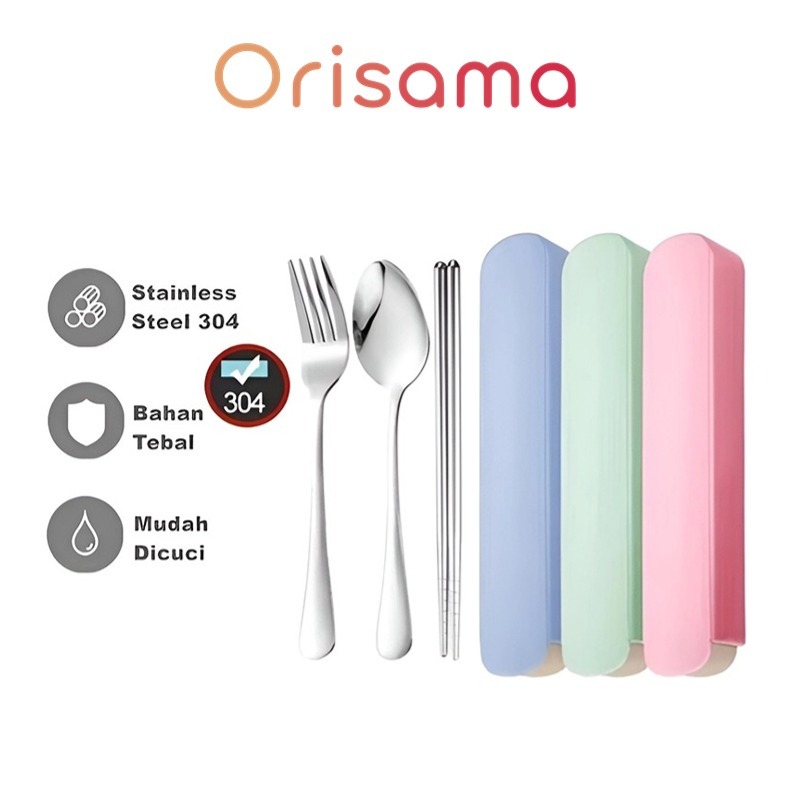 Sendok Garpu Sumpit set Stainless Steel Tebal Food Grade BOX