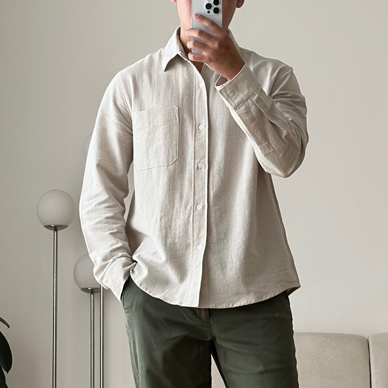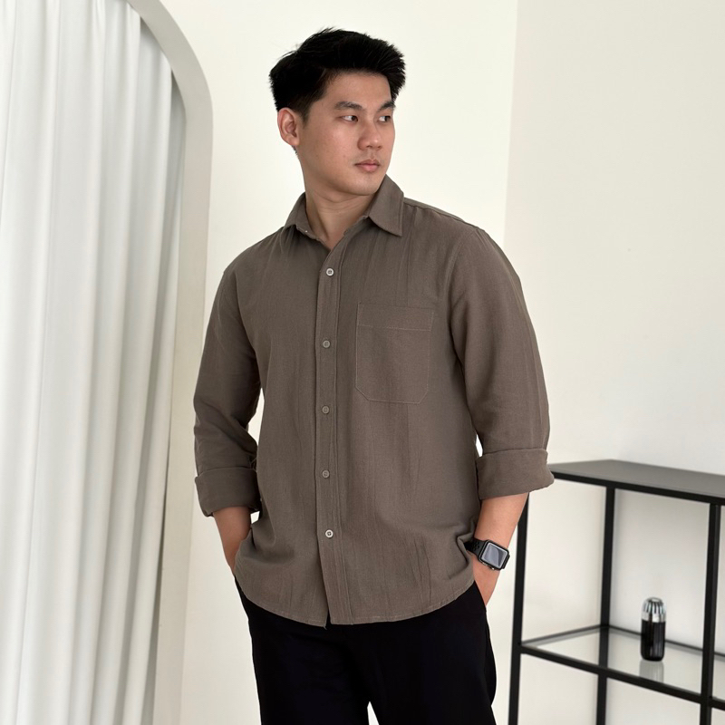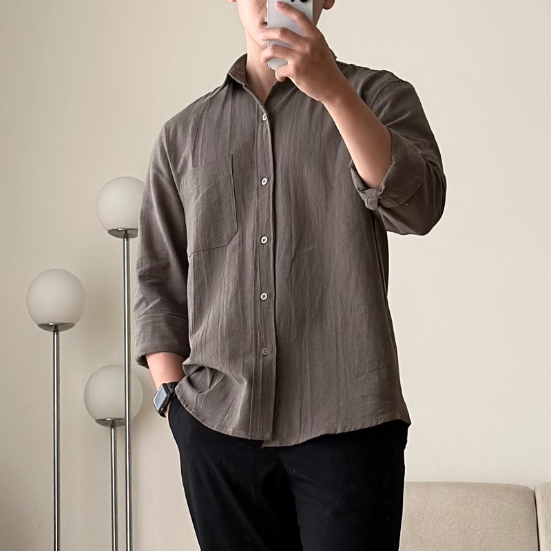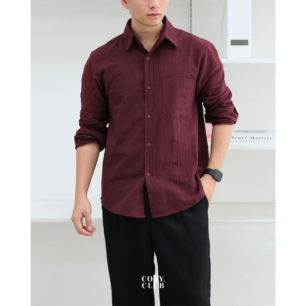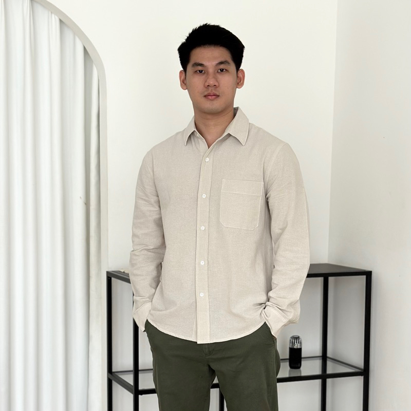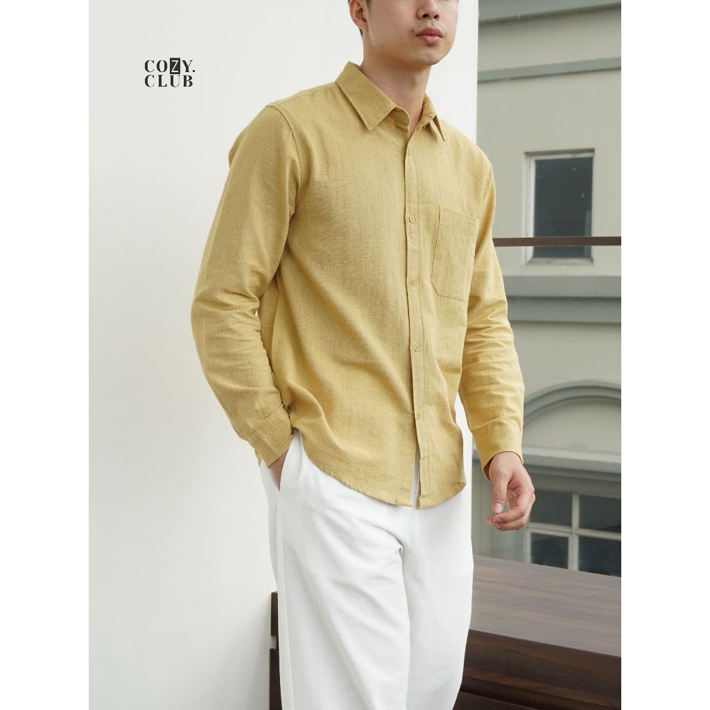 COZYCLUB Long Sleeve Linen Shirt | Kemeja Polos Linen Pria Lengan Panjang | 91