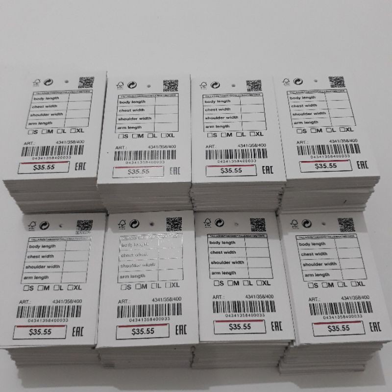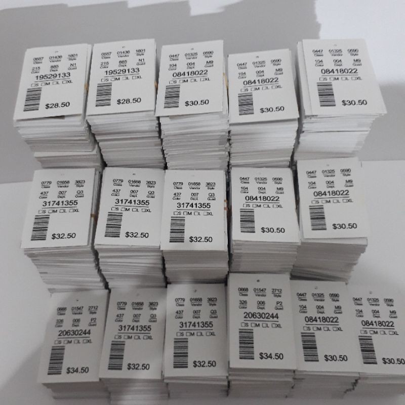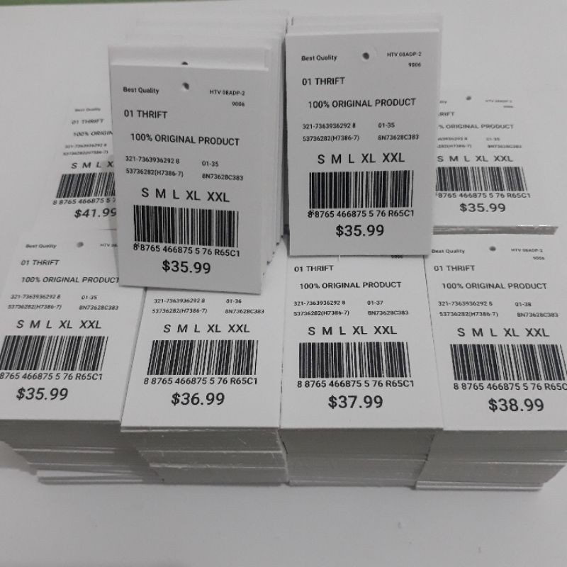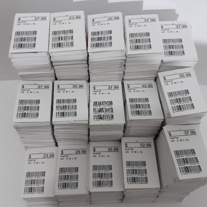 Hangtag barcode harga campur random ,bonus tali, label harga price tag dolar dollar import hangtag baju barcode murah ukuran 4x6 ready stok