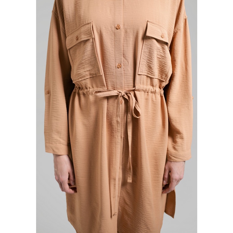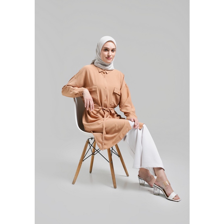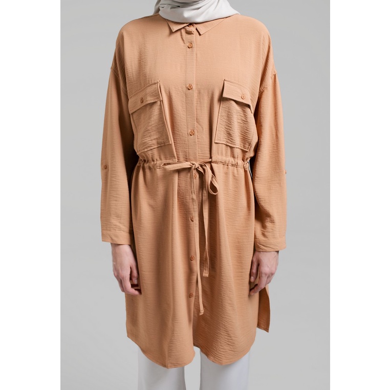 Hanna Tunik Malikha Pakaian Muslim Hijab Atasan Pinggang Serut Coklat 040722