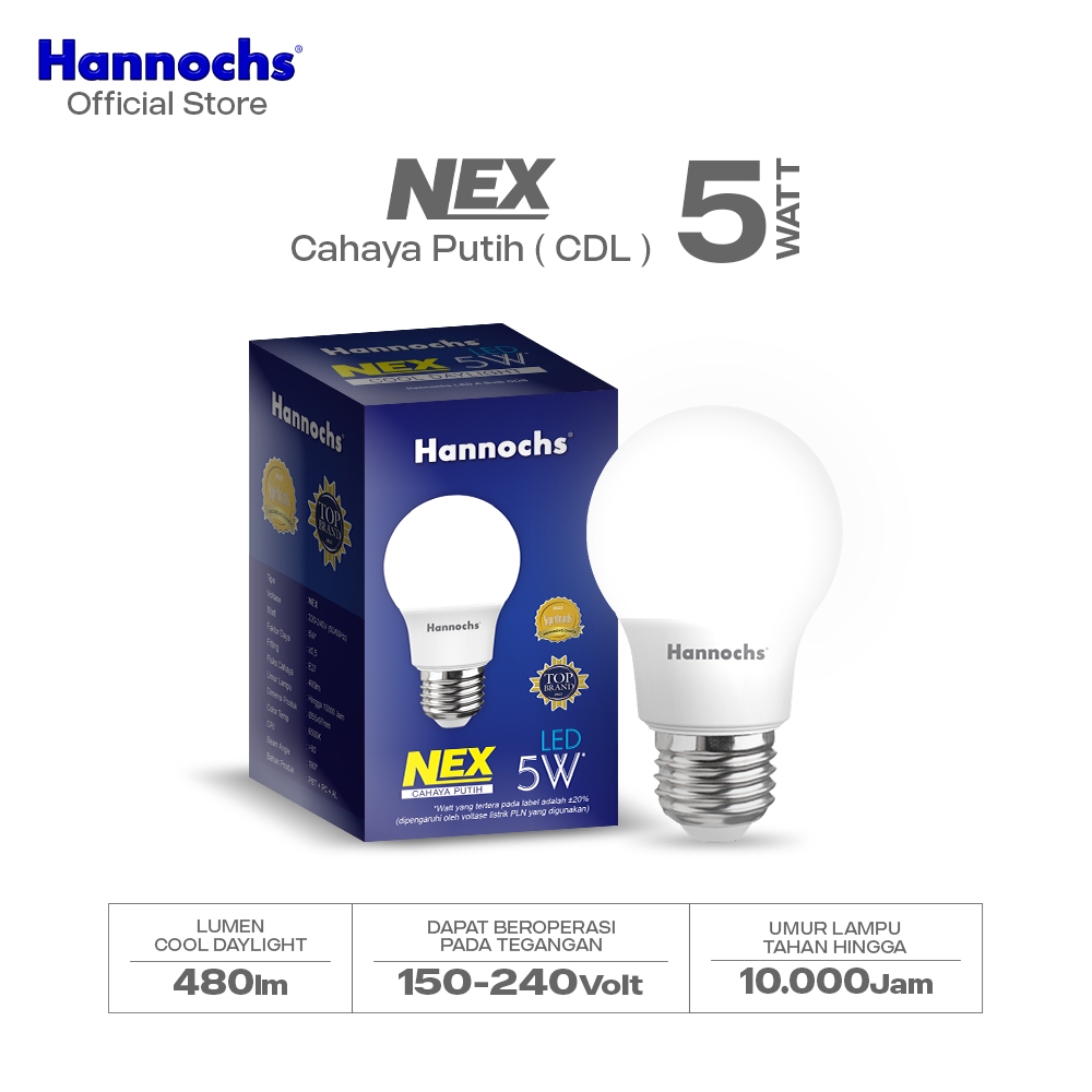 Hannochs Lampu Bohlam LED NEX 5W Cahaya Putih Paket isi 5pcs