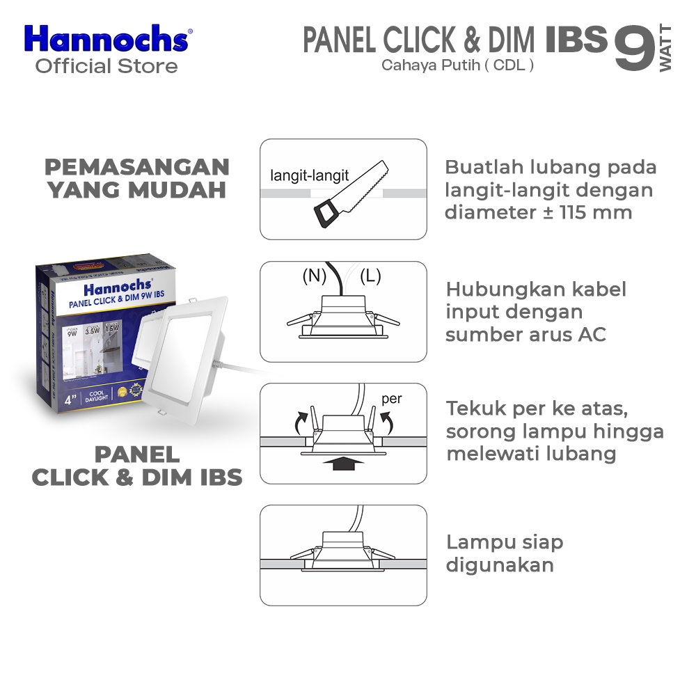 Hannochs Lampu Downlight LED Panel Click & Dim 9W IBS Cahaya Putih