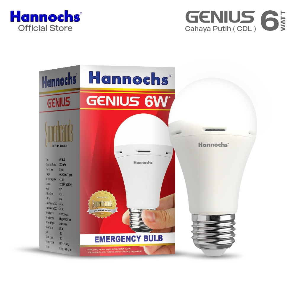 Hannochs Lampu Emergency Bohlam LED GENIUS 6W Cahaya Putih