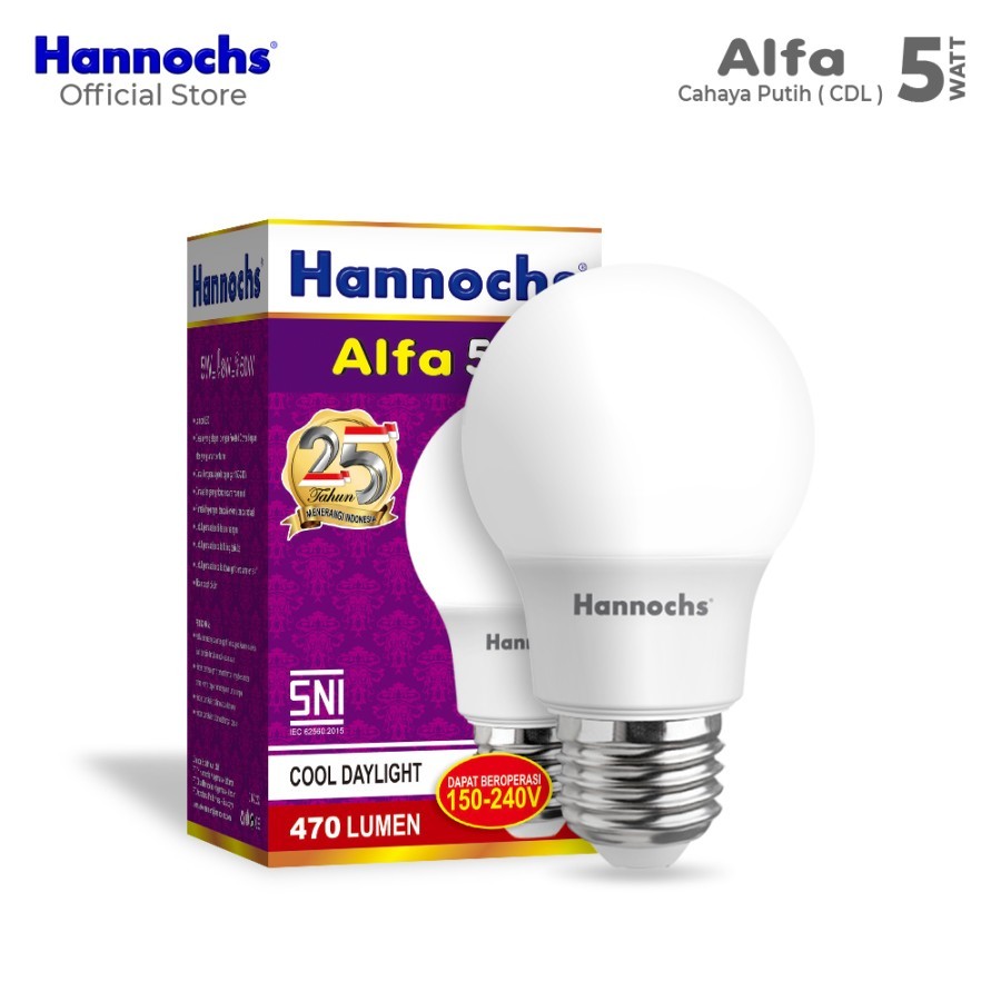Hannochs Lampu Bohlam LED Alfa 5 watt Cahaya Putih