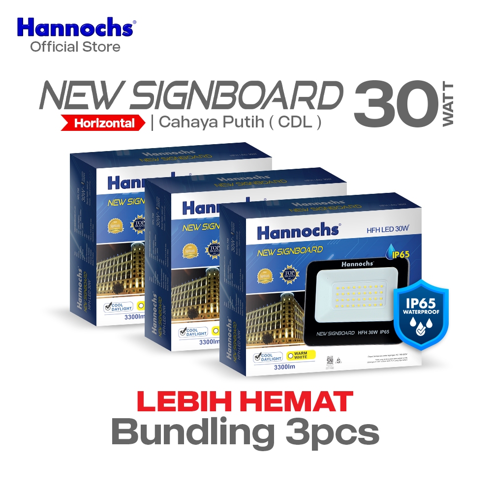 Hannochs Lampu Sorot LED New Signboard HFH 30W Cahaya Putih isi 3pcs (Model Horizontal)