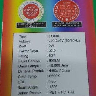 Hannochs Sonic 9w 9 w 9 watt Hannochs LED 9W Lampu Hannochs 9W