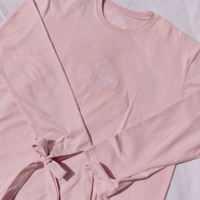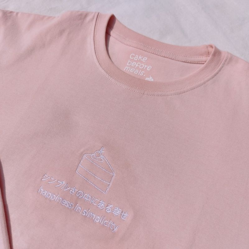 Happy T-Shirt Cake Before Meals Kaos Pita Baju Pita Baju Jepang Kaos Pink Cute Kawaii Baju Pink