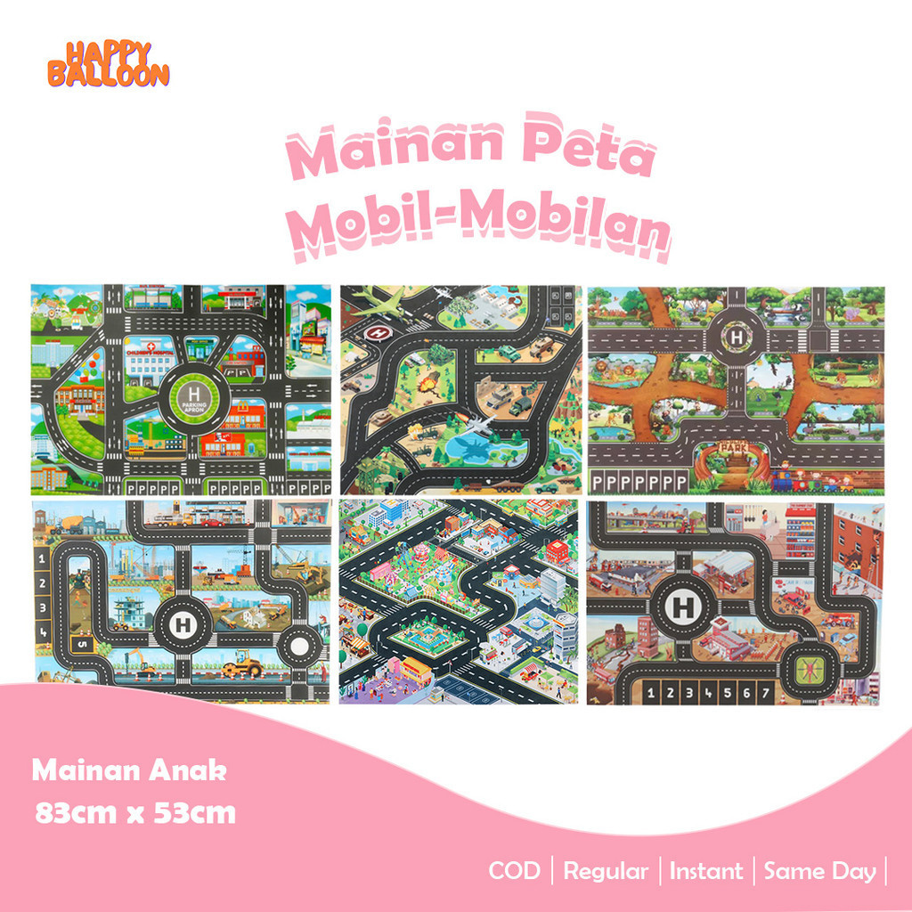 HappyBalloon Mainan Peta Untuk Mobil Mobilan / Road Map Alas Peta Jalan Mobil