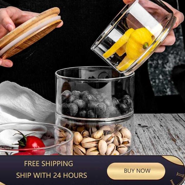 Harga miring... Toples Kaca Unik Tutup Kayu Wadah Susun / Tempat Penyimpanan Gula Teh Kopi Tepung Bumbu Dapur Dengan Tutup Kayu Kedap Udara – Coffee Sugar Tea Jar Container 800ml