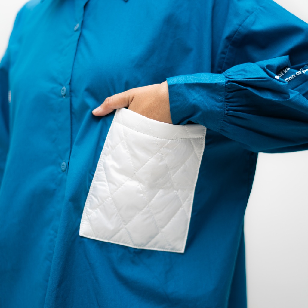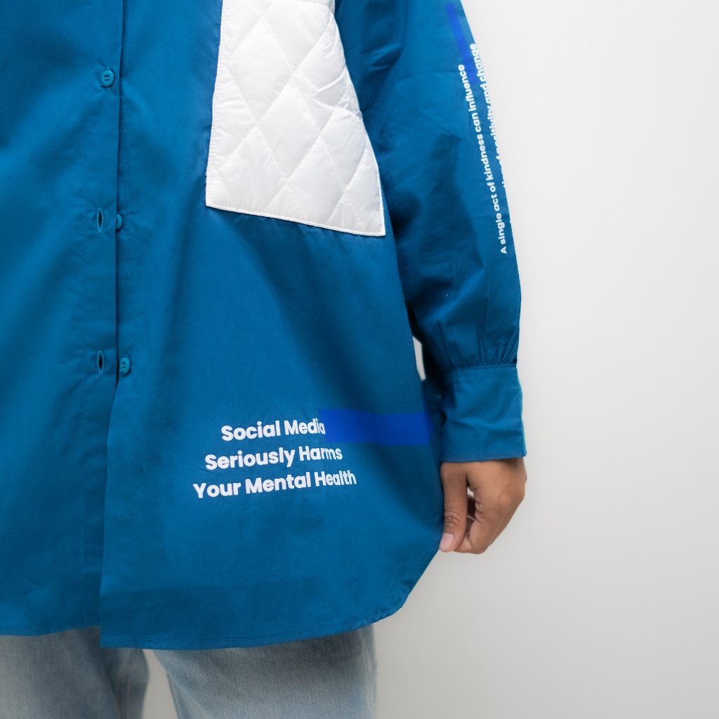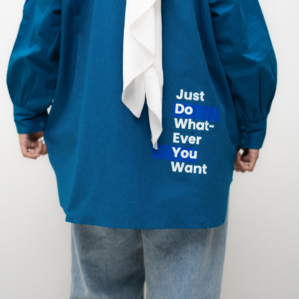 Counique Atasan Kemeja Wanita Oversized lengan Panjang Biru Turkis Navis LD 120