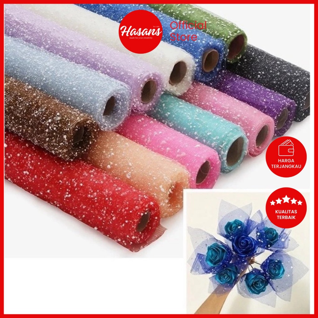 Hasans [1 Roll] Kertas Buket Bunga / Flower Wrapping Paper / Kain Tile Salju / Snowy Wrapping Paper / Snowflake Polimesh / Lembaran Kain Tile Salju / Kain Buket Bunga / Polimesh Salju / Kain Tile Salju (Snowy Wrapping Paper)