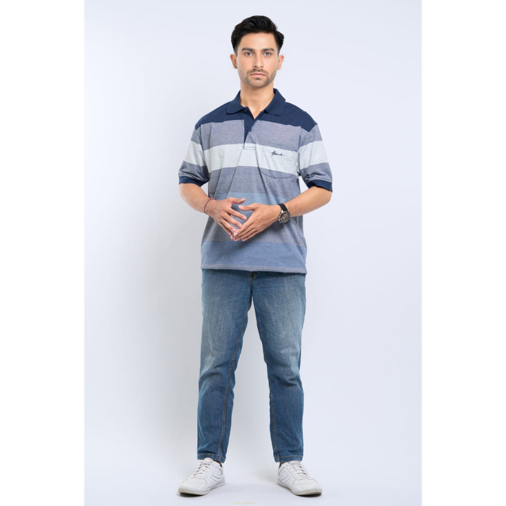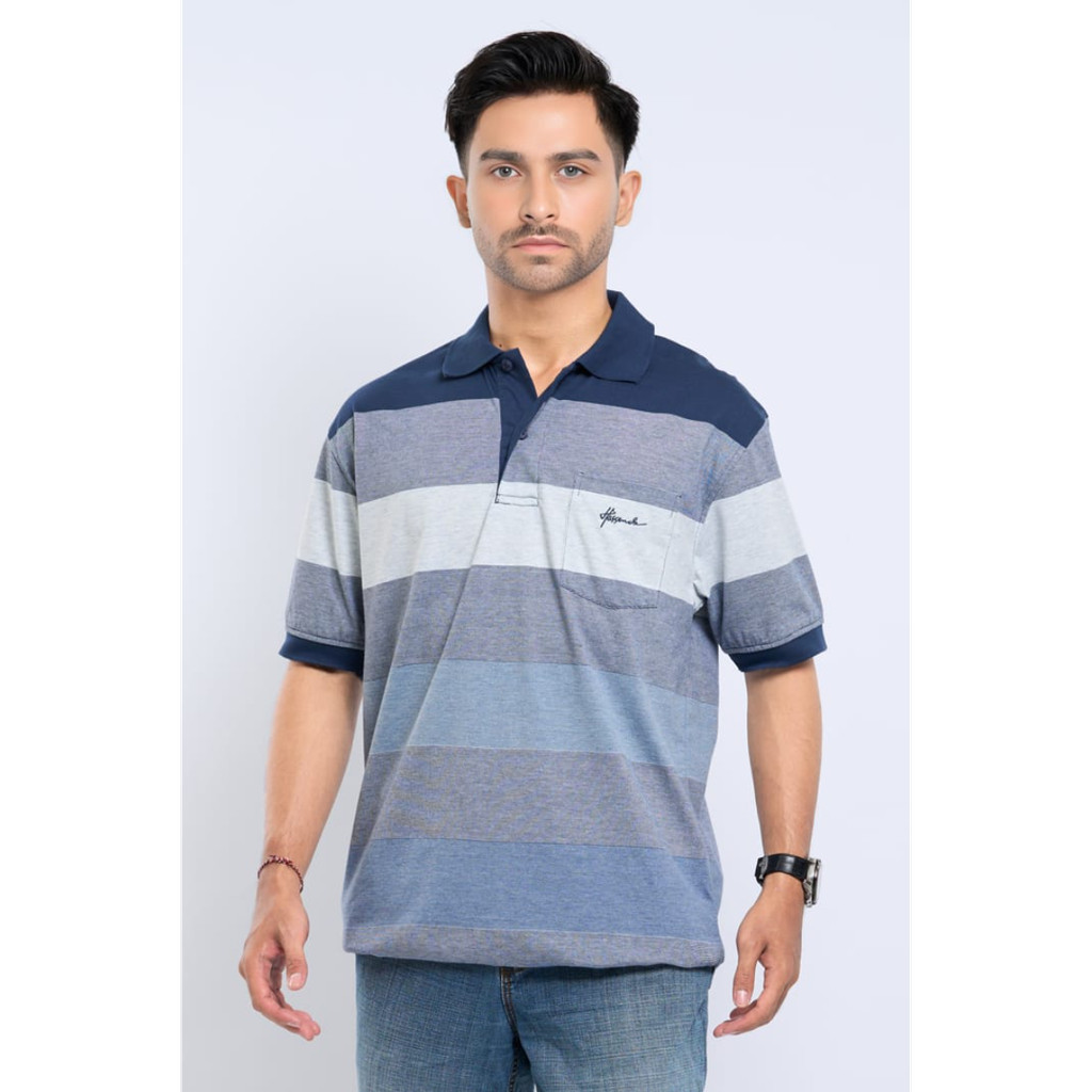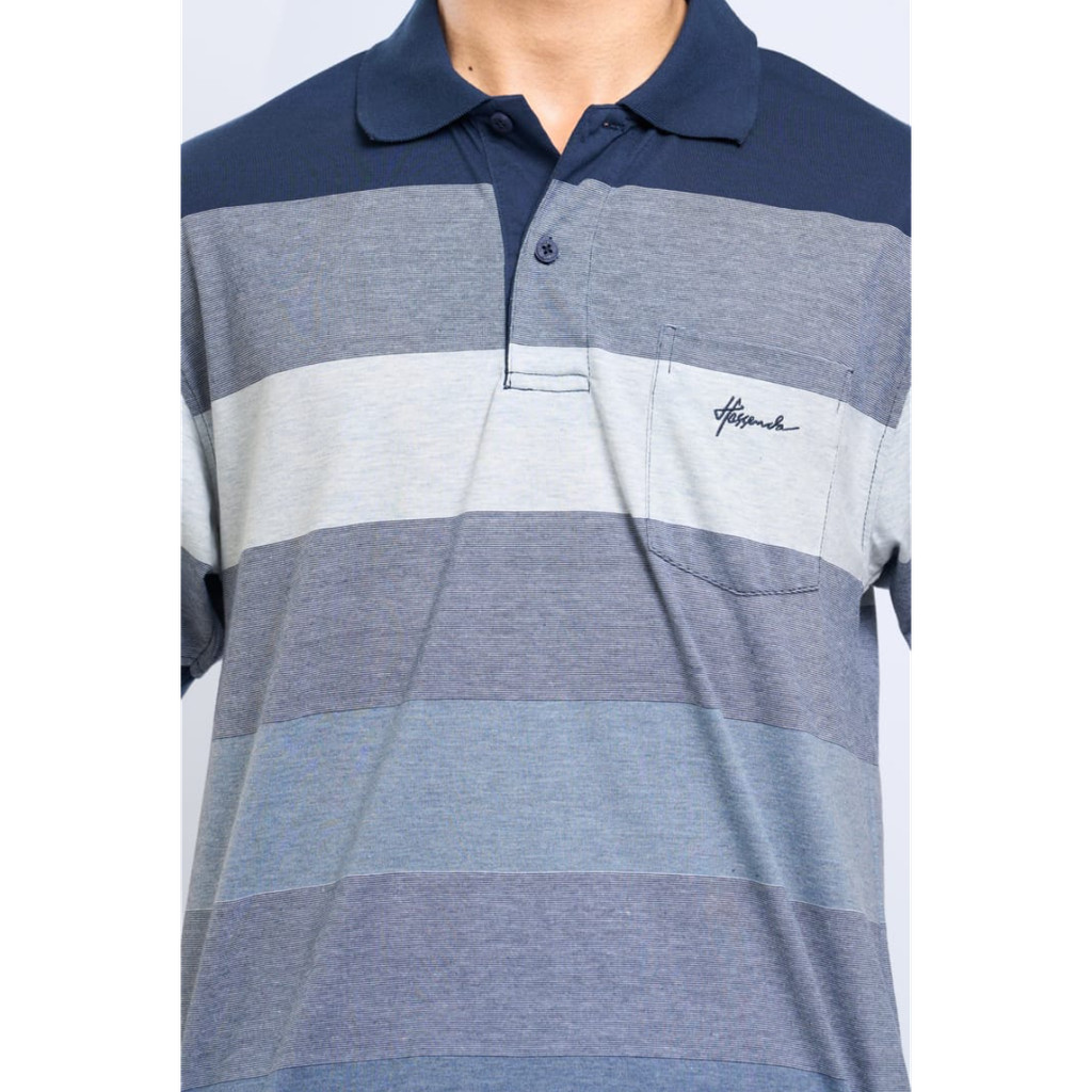 Hassenda Kaos Polo Pria Salur Lengan Pendek Lukes Steel Blue