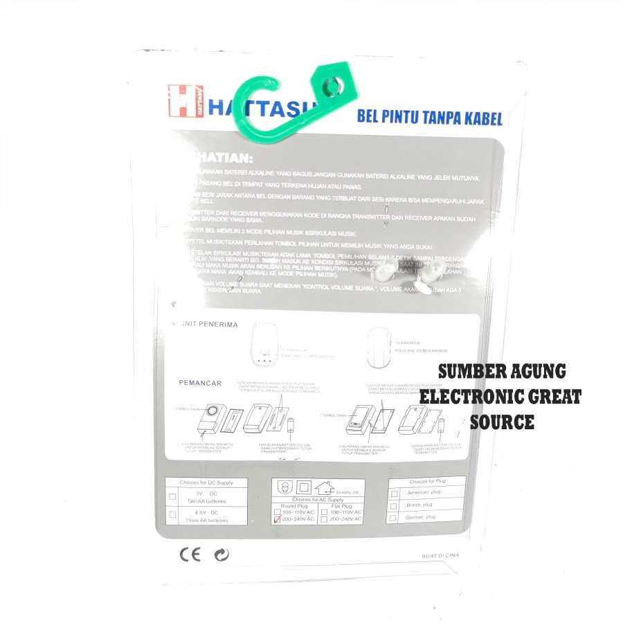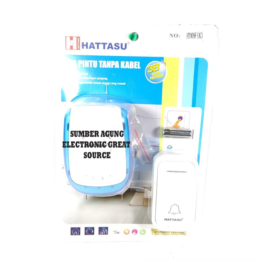 Hattasu Bel Pintu Tanpa Kabel HT009F AC DC Bell Wireless 38 Suara Hata