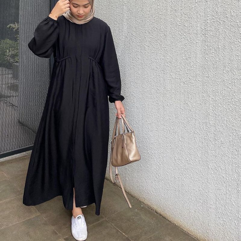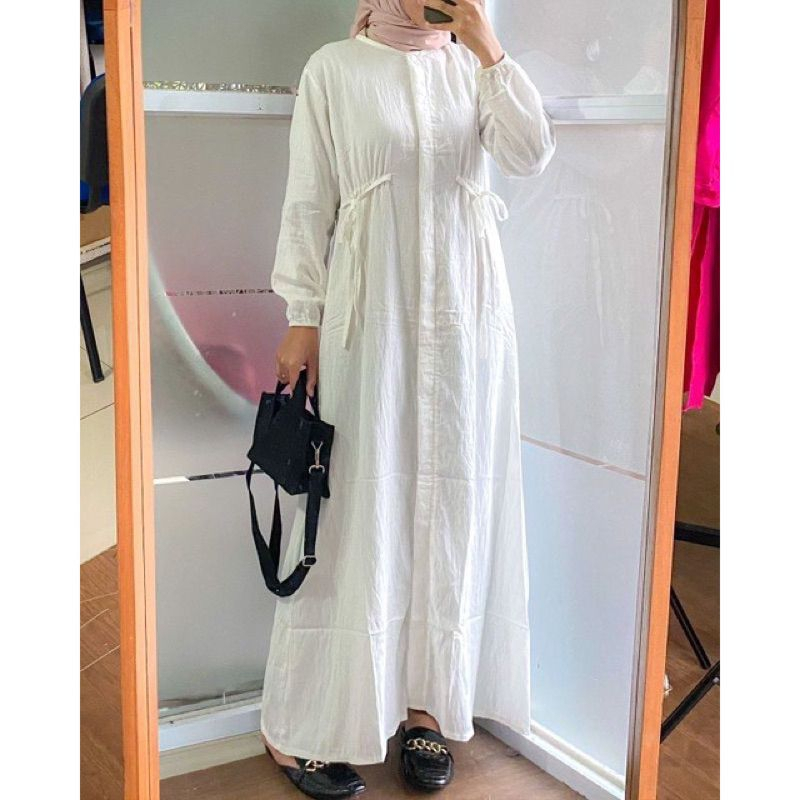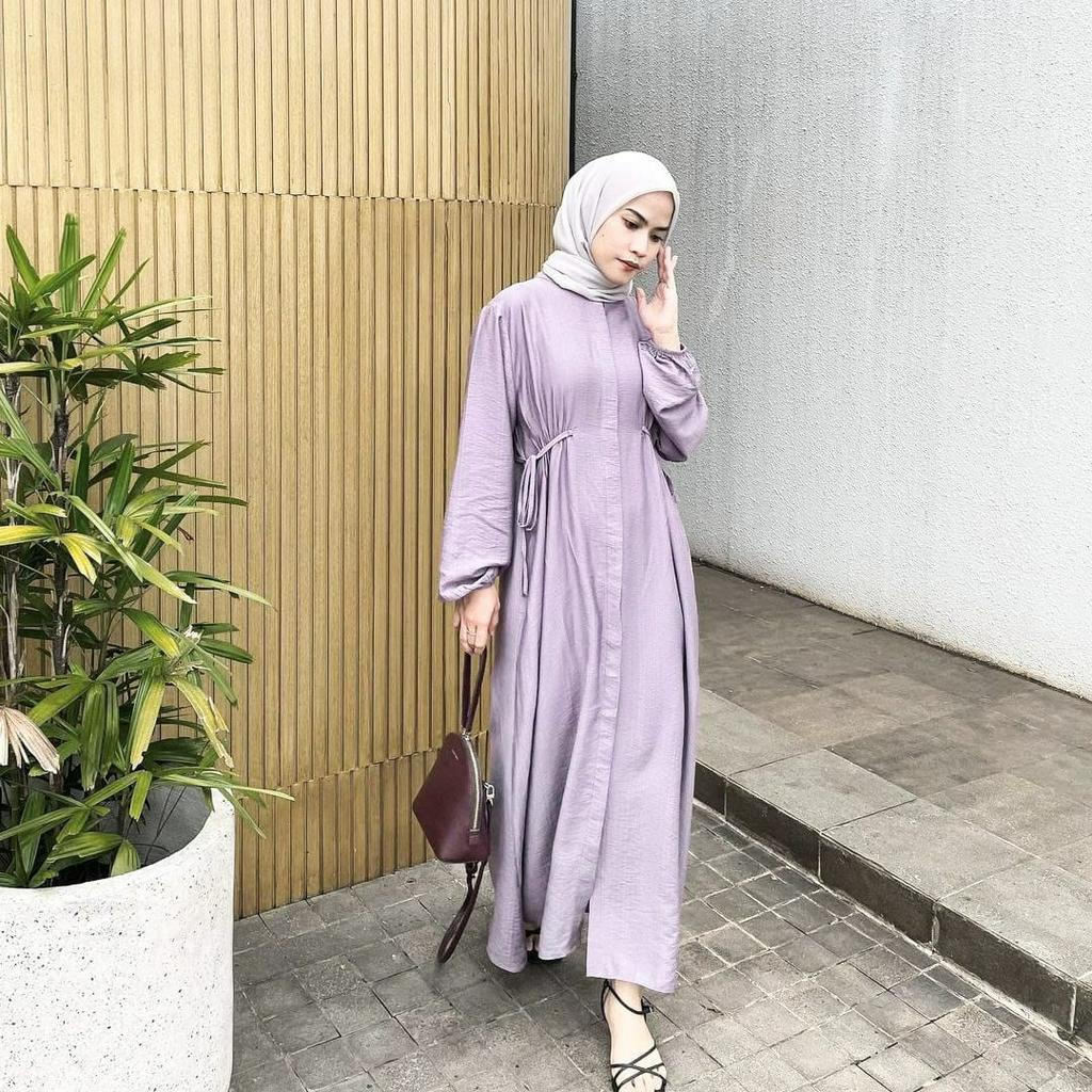 Hazel Midi Dress Polo Linen Tali Pinggang- Gamis Terbaru- Gamis Wanita