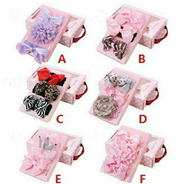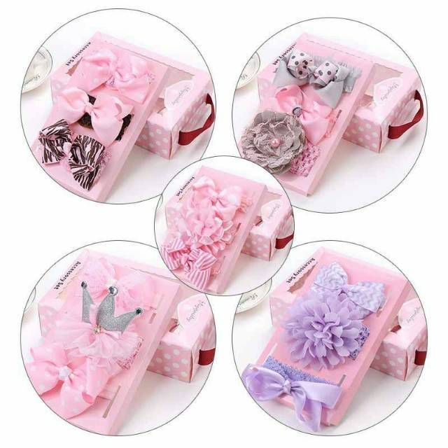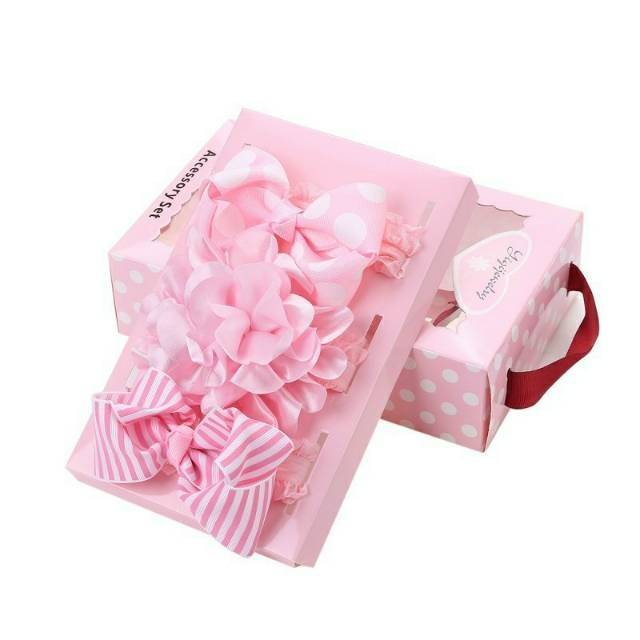 Headband Set Dengan Kotak / Bandana Anak / Bandana Bayi / Aksesoris Rambut Anak Perempuan / Hampers
