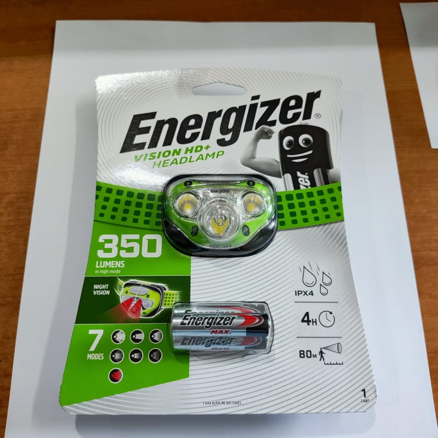 Headlamp Energizer Vision HD+ 350 Lumens Senter Kepala Free Baterai AAA 3 Pcs