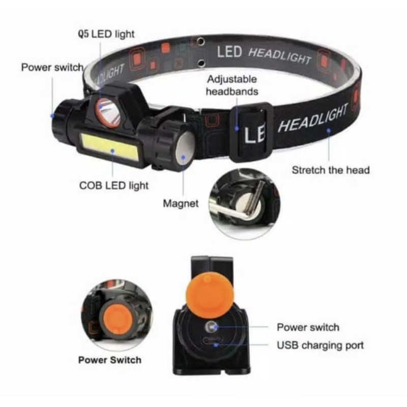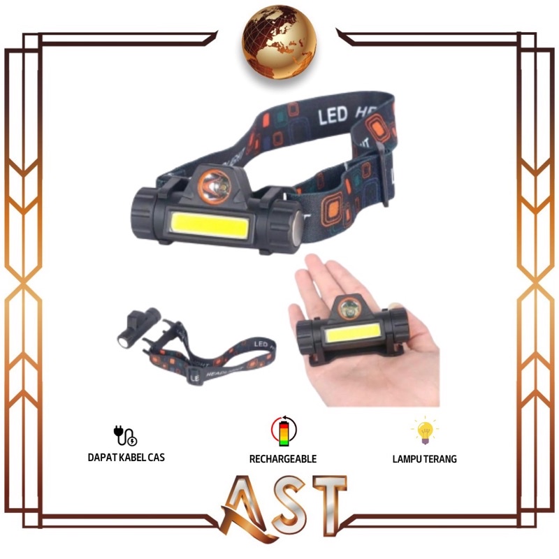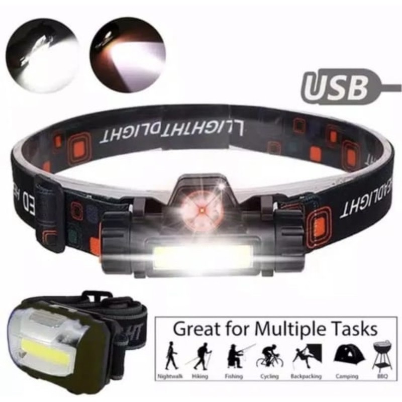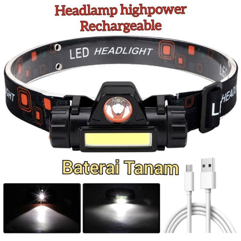 Headlamp Senter kepala Lampu LED USB Headlight Recharger High Power terang Jarak Jauh