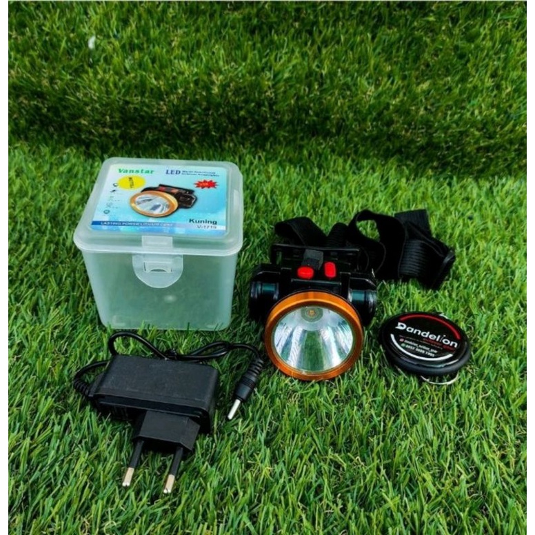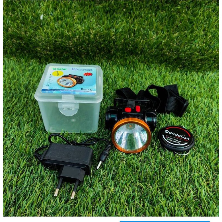 Headlamp charger LED Vanstar Original +Box warna lampu kuning/Senter Kepala outdoor