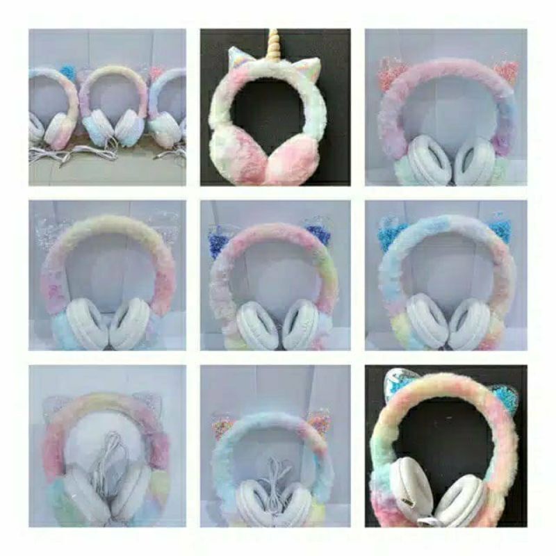 Headphone Bando Anak ear Cat Lucu Zoom Karakter Kelinci Kucing with mic Stereo