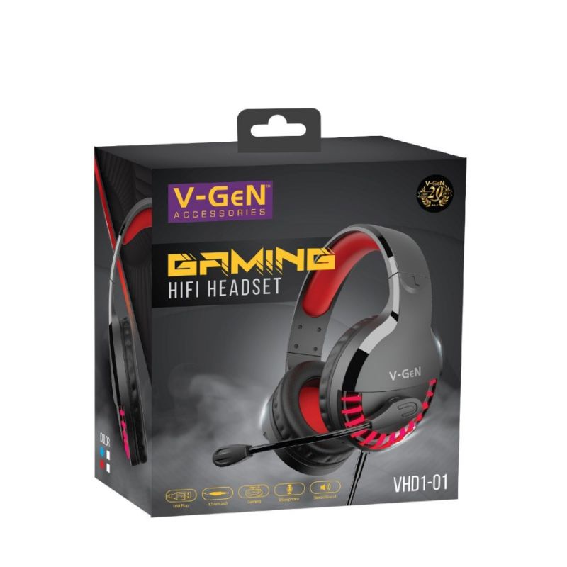 Headphone Gaming LED V-Gen VHD1 01 / Headset Gamer + Microphone For Pc Computer Hp laptop / Vgen