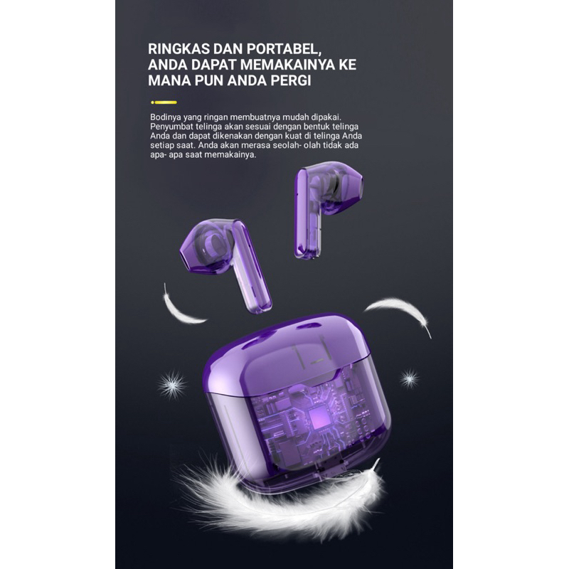 Headset Bluetooth TWS Wirelles LED Display Transparan Hifi Sound