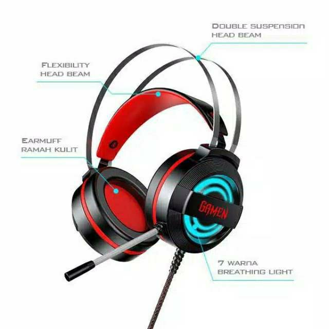 Headset Gaming Gamen GH1100 Handsfree Gaming 7 Color Breathing Lights Original