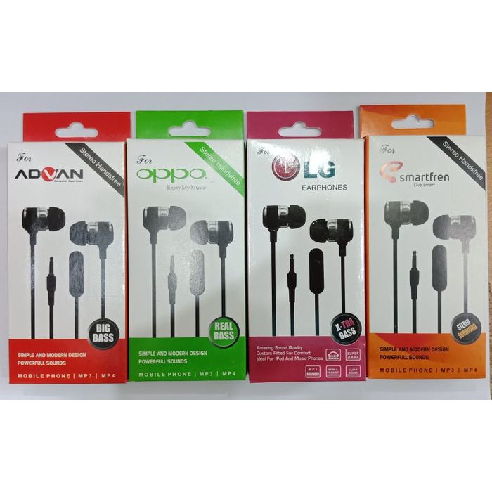 Headset Handsfree Branded OPPO , LG , ADVAN , SMARTFREN , ACER SUPER BASS