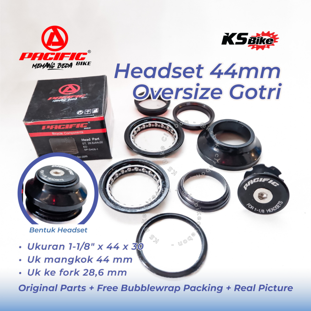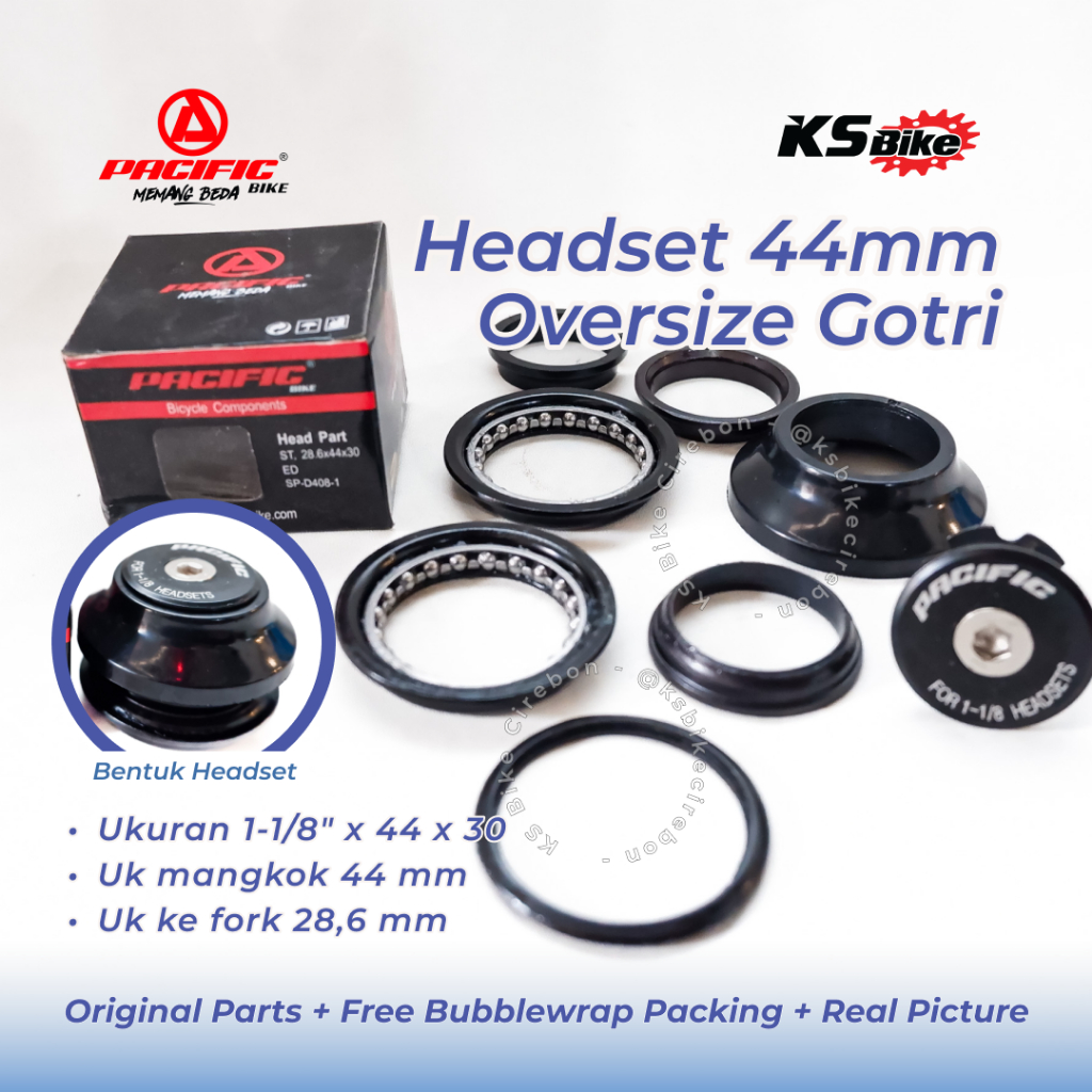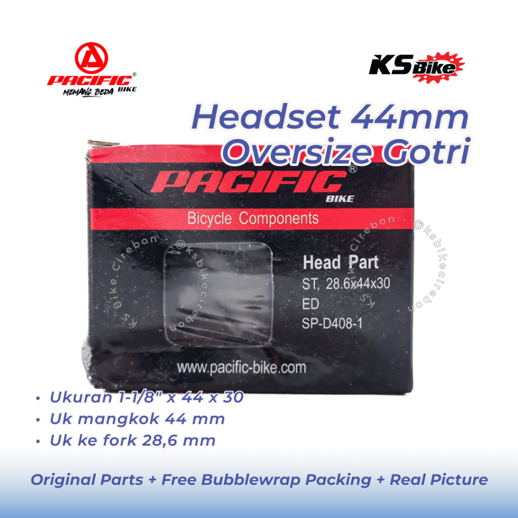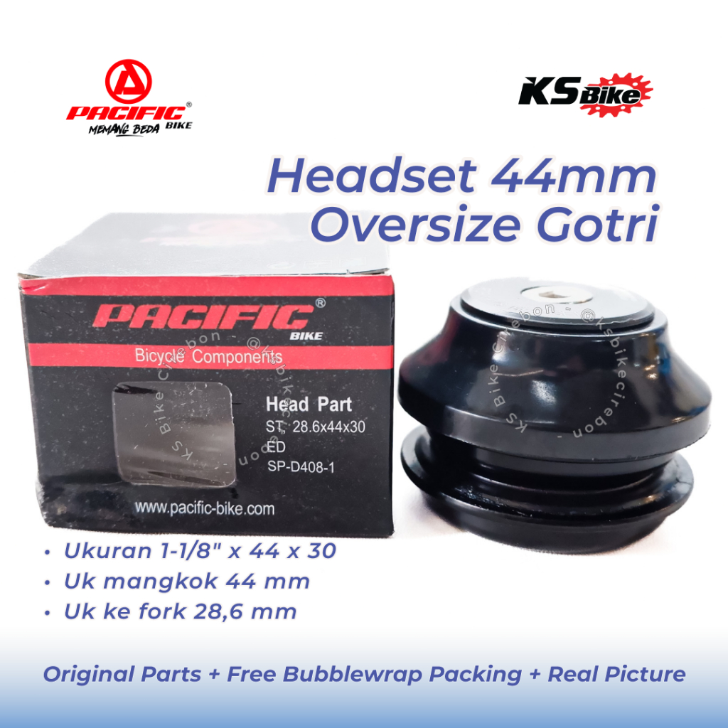 Headset Sepeda 44 x 30mm OS Tanam Pacific D408 Head Set Over Size MTB BMX Fixie Semi Integrated Threadless Komporok Mangkok Stir Toko Sepeda KS Bike Cirebon
