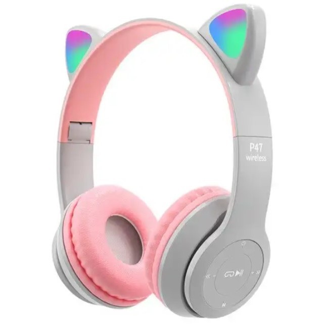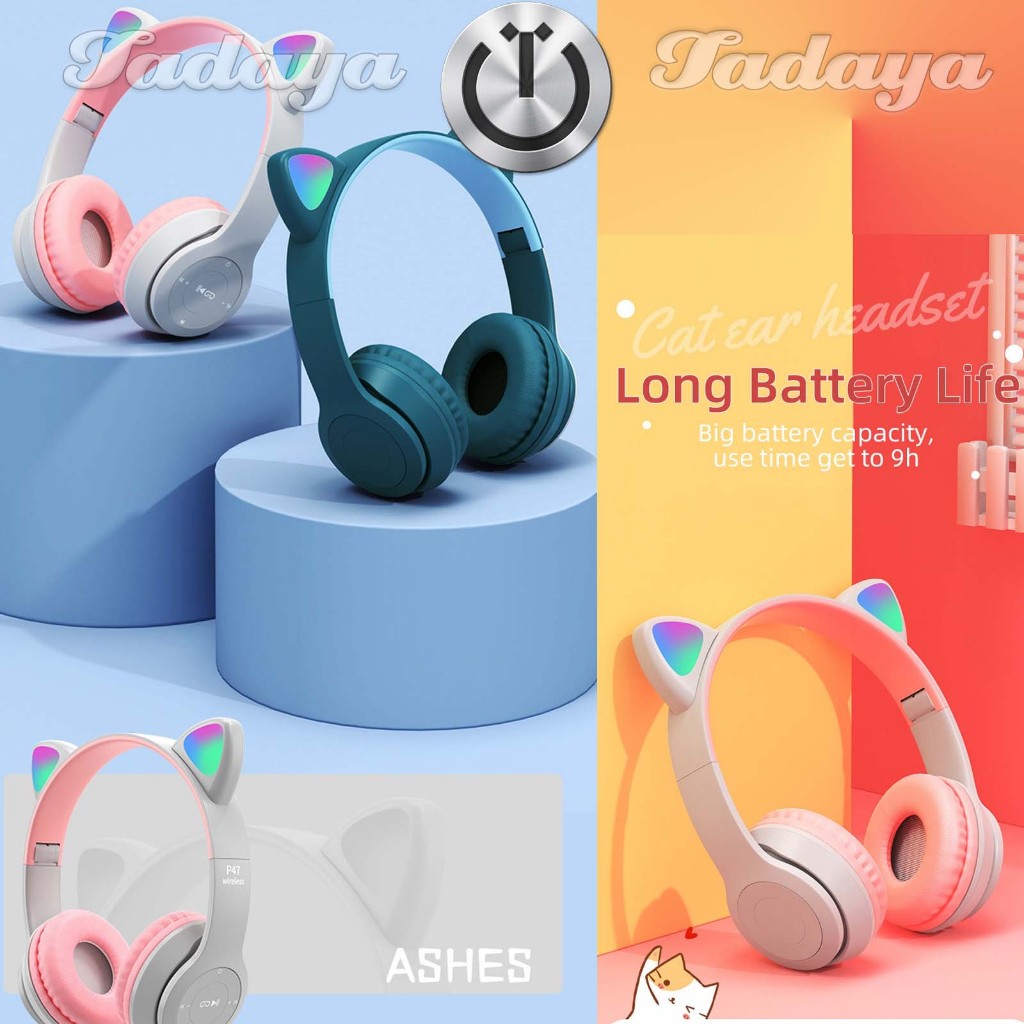 Headset Headphone bluetooth Led Cat ear Wireless gaming model telinga kucing lucu