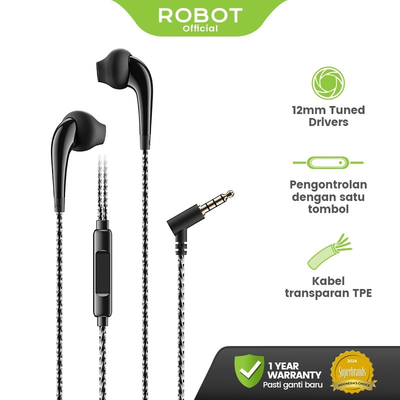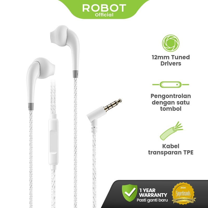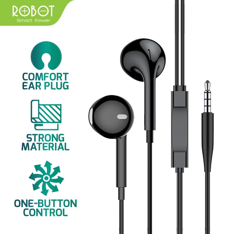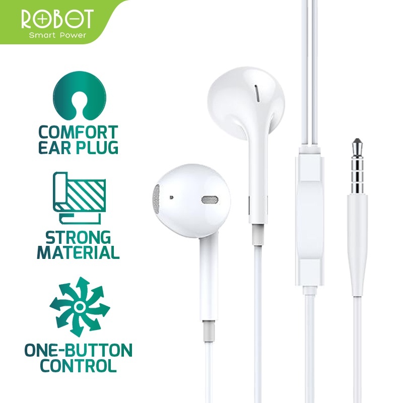 Headset Kabel ROBOT RE101S Headset Kabel Android | Wired Earphone Suara Bass Android Original - Garansi 1 Tahun