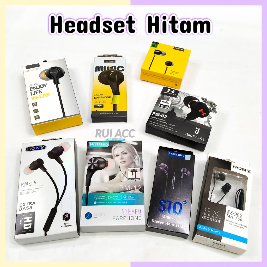Headset Kabel Warna Hitam Stereo Bisa Semua Android Earphone Handsfree Rui Acc