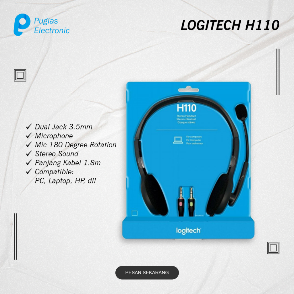 Headset Logitech H110 Dual Jack 3.5mm Headphone Komputer PC HP Laptop