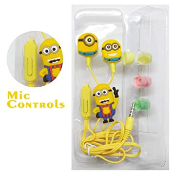 [COD] Headset Lucu Motif Karakter Minion Kuning dan 3 Earbud Cadangan