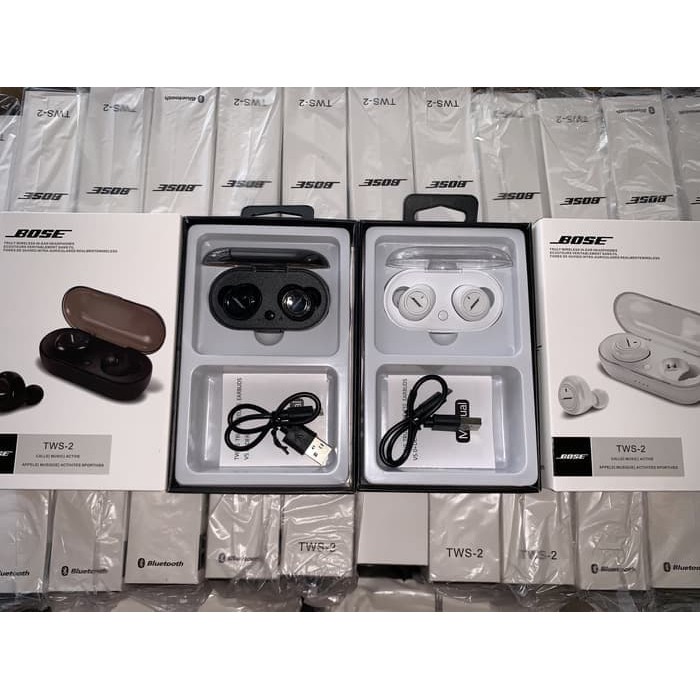Headset bluetooth BOSE TWS Wireless earphone bluetooth Isi 2 TWS - Hitam