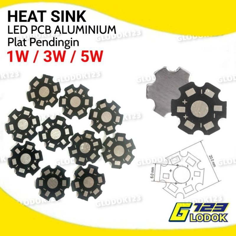 Heatsink Aluminium HPL LED 1W 3W Plat Pendingin Star PCB Heat Sink PCB Star Alumunium Aplikasi: untuk HPL LED 1W - 3W Ukuran: Diameter 20mm Blm termasuk LED, hanya PCB saja.