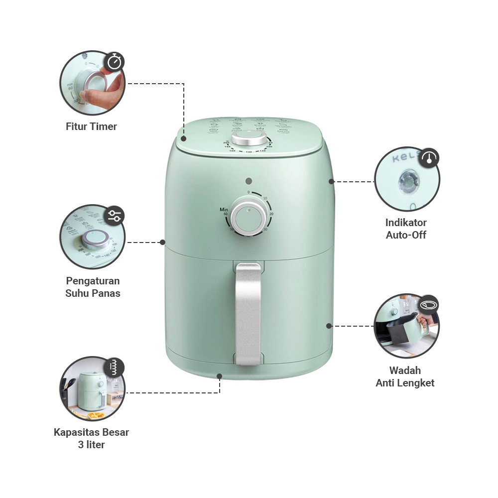 Informa Kels 3 ltr Landen Air Fryer - Hijau Alat Goreng Pembuat Makanan Elektronik Dapur Sehat Oven Udara Penggorengan Udara