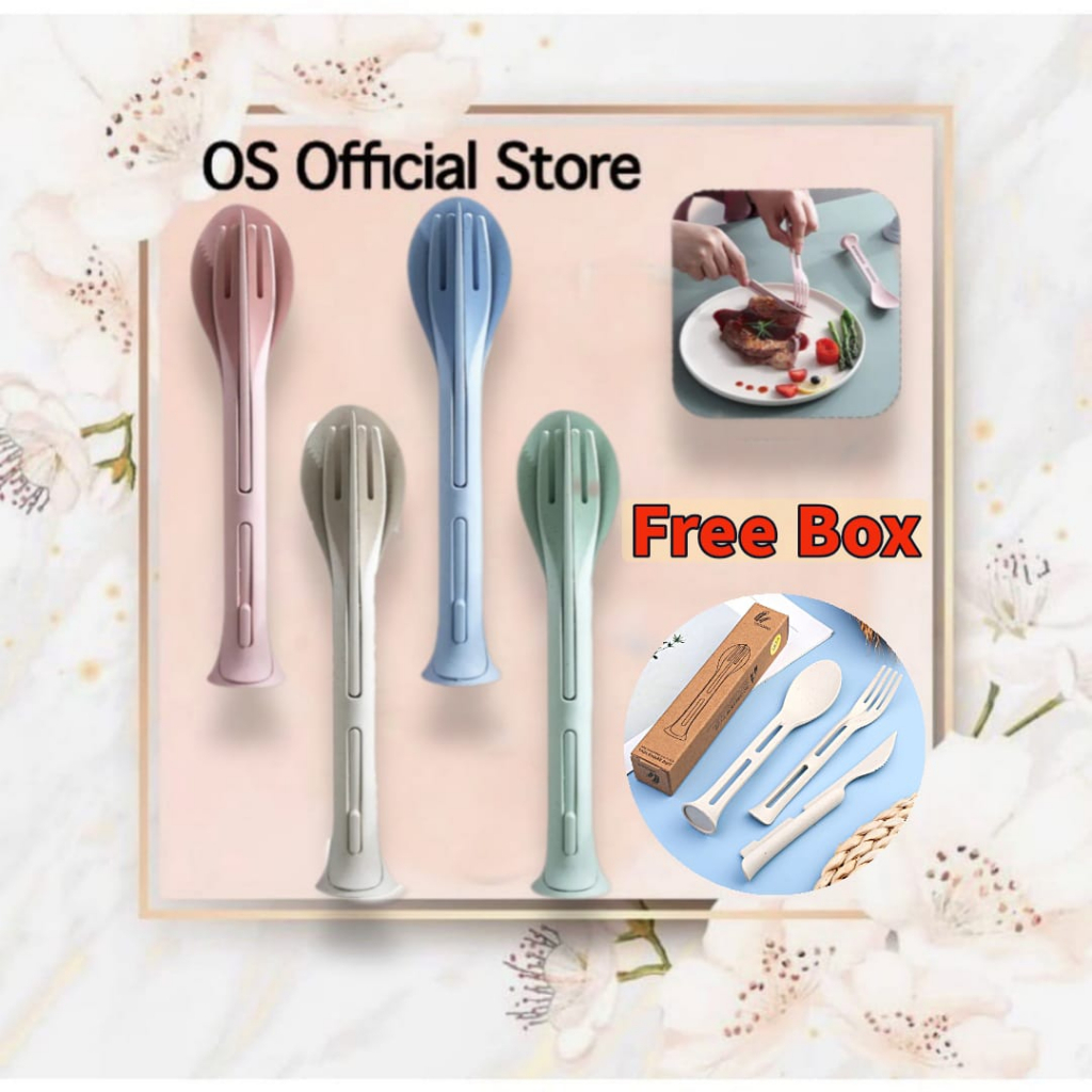 OS SENDOK GARPU PISAU SET PRAKTIS 3IN1 BAHAN JERAMI / SET ALAT MAKAN TRAVELING